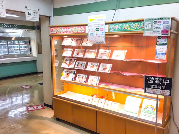 特徴 第二食堂棟2階にある、お好みの商品を選ぶことが出来るカフェテリア形式を中心としたバランスの良いメニューやハラール対応のメニューも充実している食堂