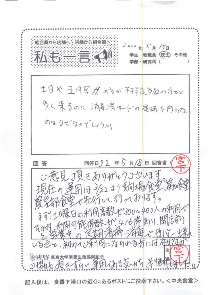土日や五月祭の方が不特定多数の方が多く来るのに・・・