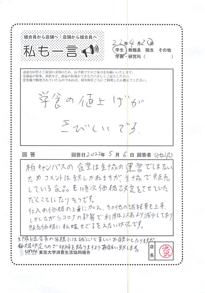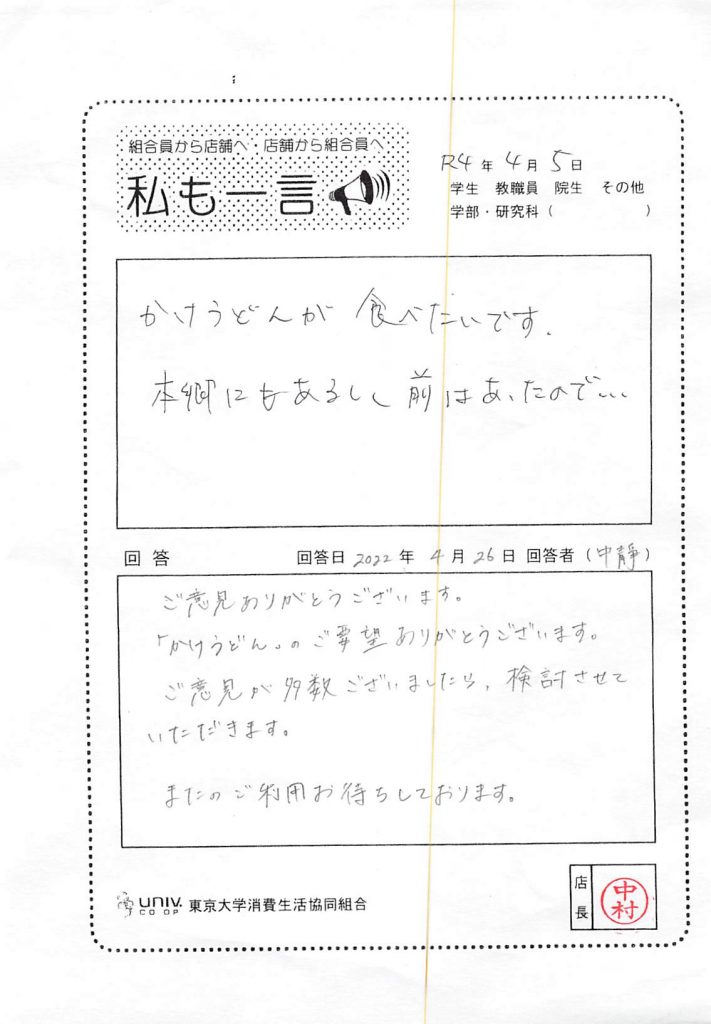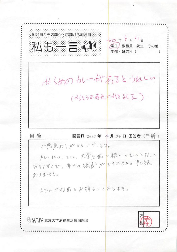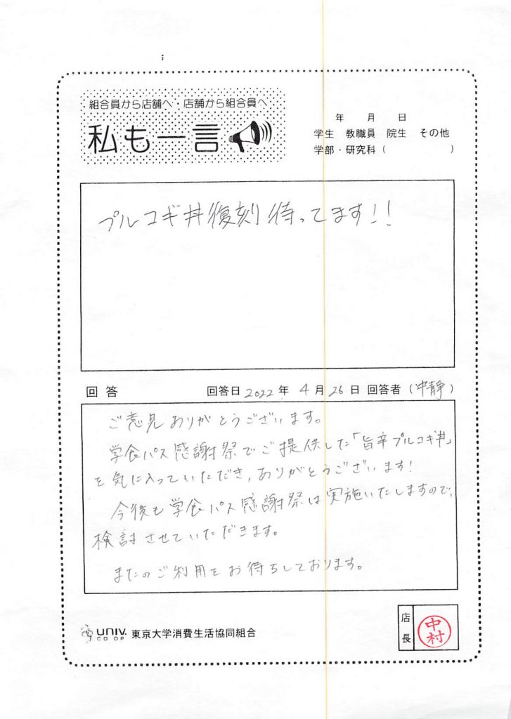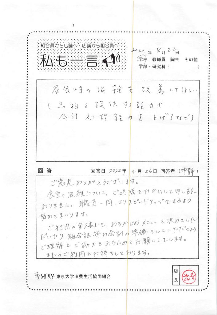 最近はタンメンが復活したので利用していますが、何とかなりませんでしょうか。