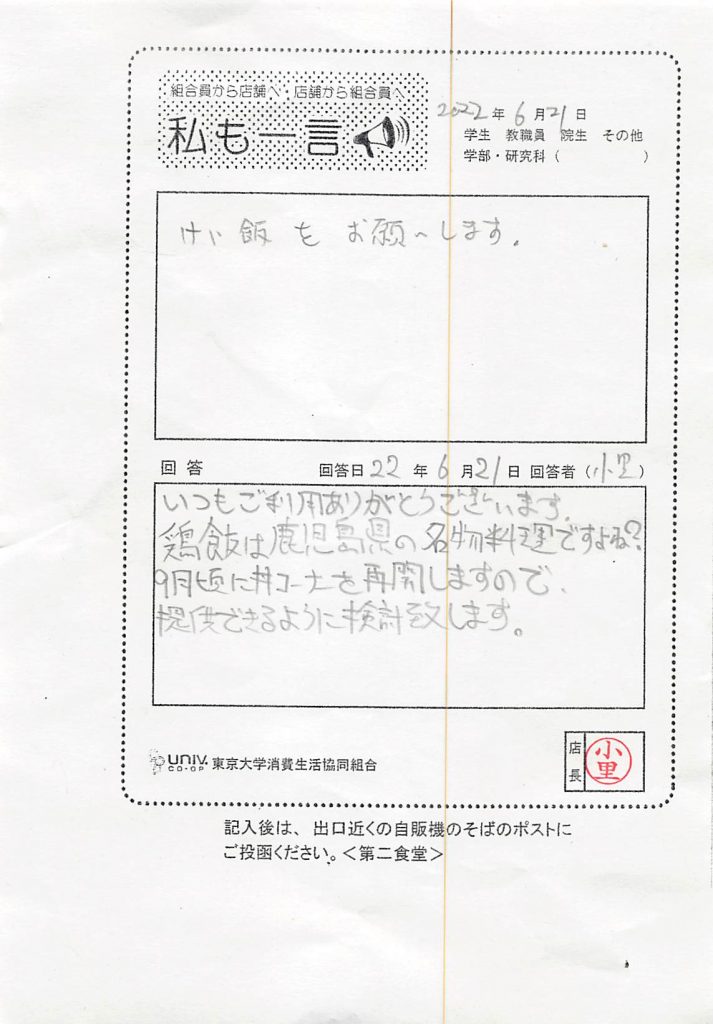 東大生協について