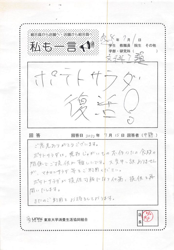 また生協としましても、ご自身でバランスの良い食事を取る事を推奨しておりますので、予算と相談しながら小鉢や汁類、サラダバーも組み合わせして食事を取ってほしいという想いがある点も一つです。