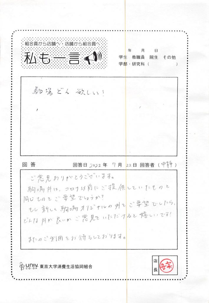 3年前に駒場で食べた時は大盛を頼んでいたのですが、本郷では大盛は無いのでしょうか?