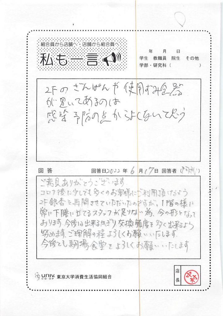 2Fのざんぱんや使用ずみ食器が置いてるのは・・・