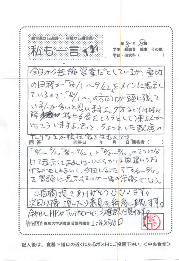 ・9/1より大学生協全店舗で新しいレジシステムへの更新があり、