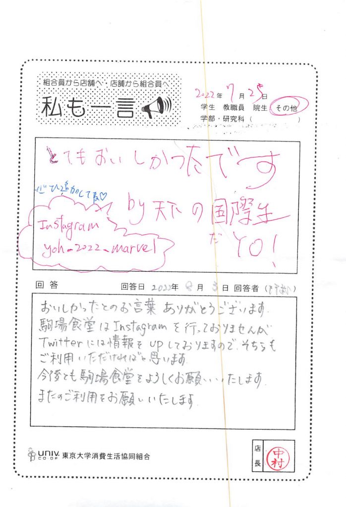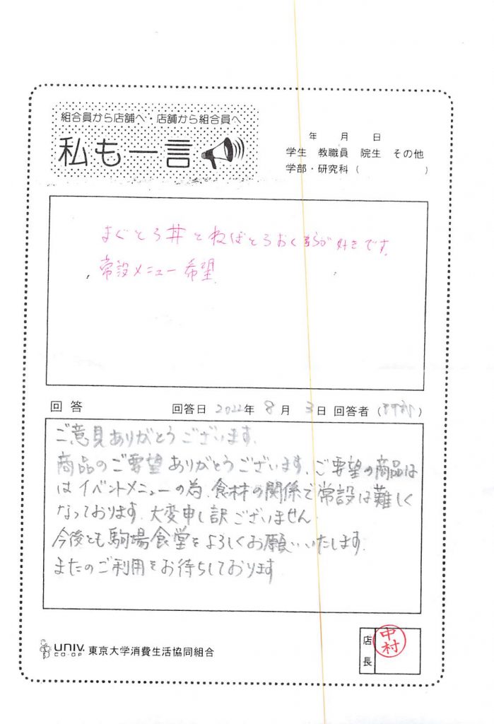 大学生協がありますが、東大生協は現金割引を継続いたします。