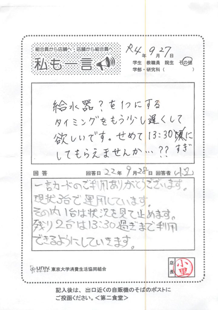 給水器?を1つにするタイミングをもう少し遅く・・・