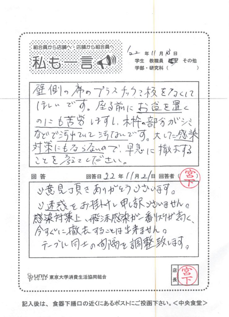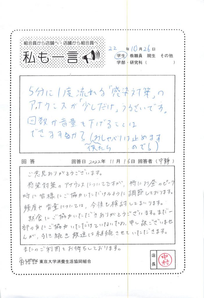 5分に1度流れる「感染対策」のアナウンスが・・・