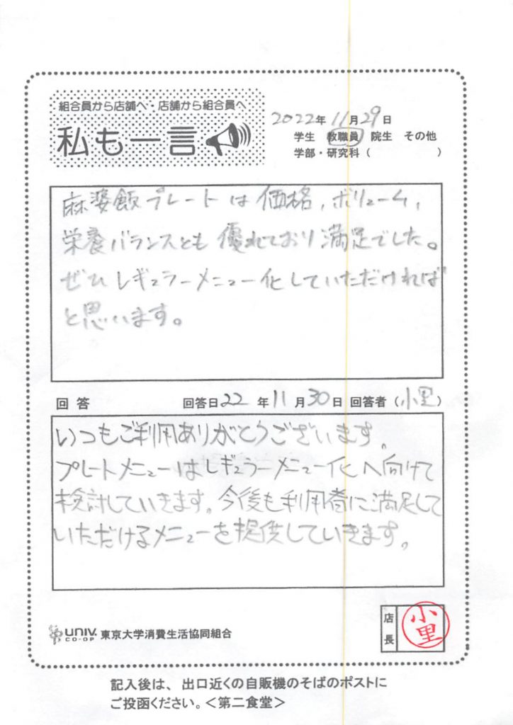 麻婆飯プレートは価格、ボリューム、栄養バランスとも・・・