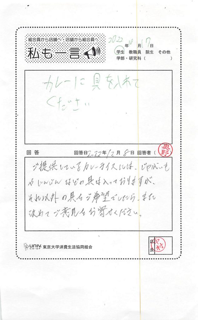 東大生協について