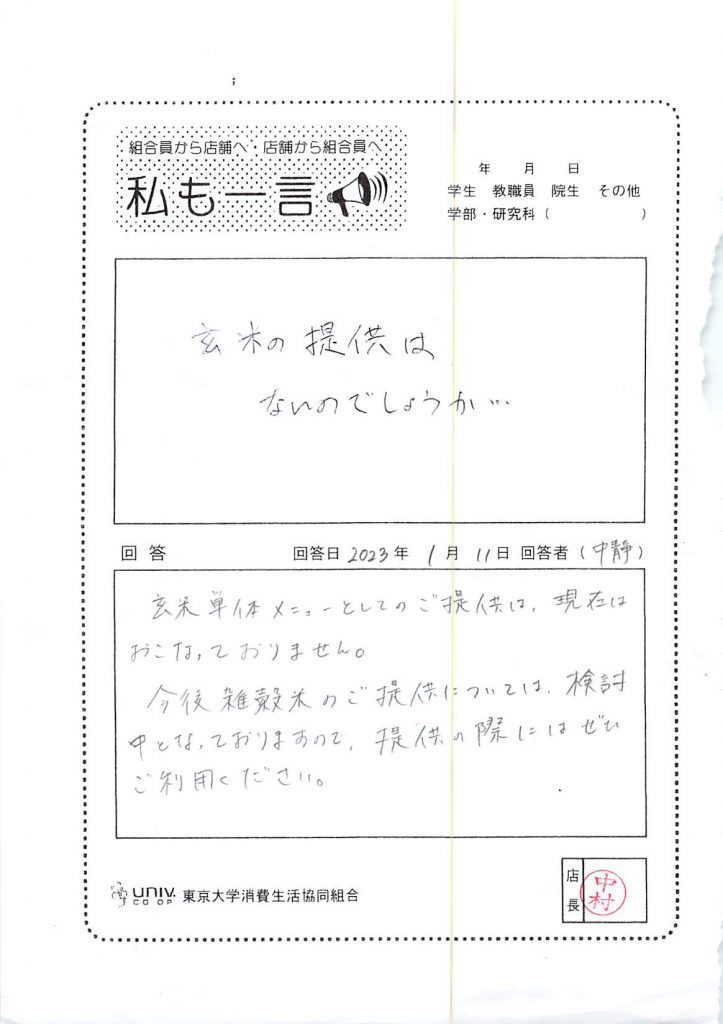 玄米の提供は・・・