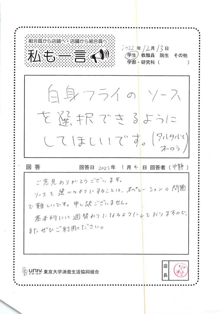 東大生協について