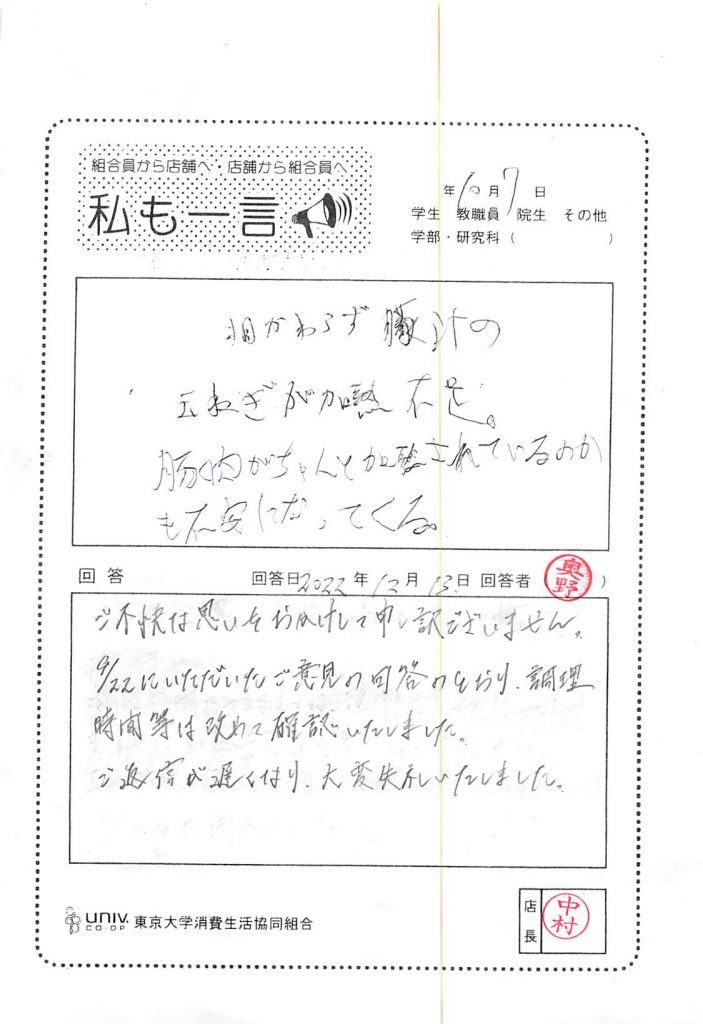 相かわらず豚汁の玉ねぎが加熱不足・・・