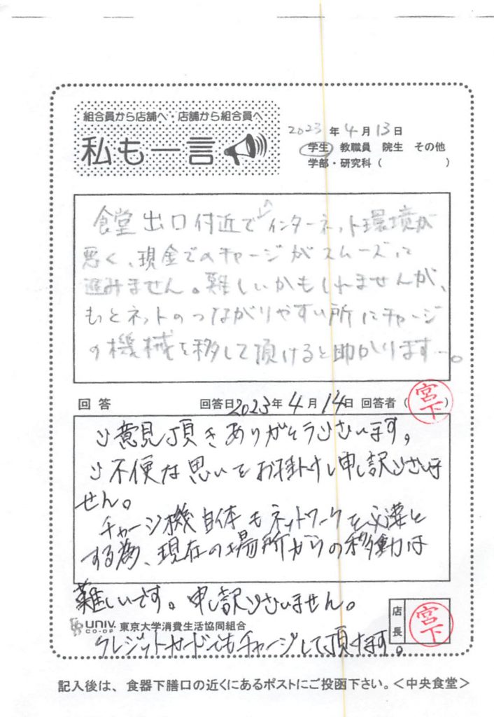 セルフレジ、生協マネー以外の決済方法追加して・・・