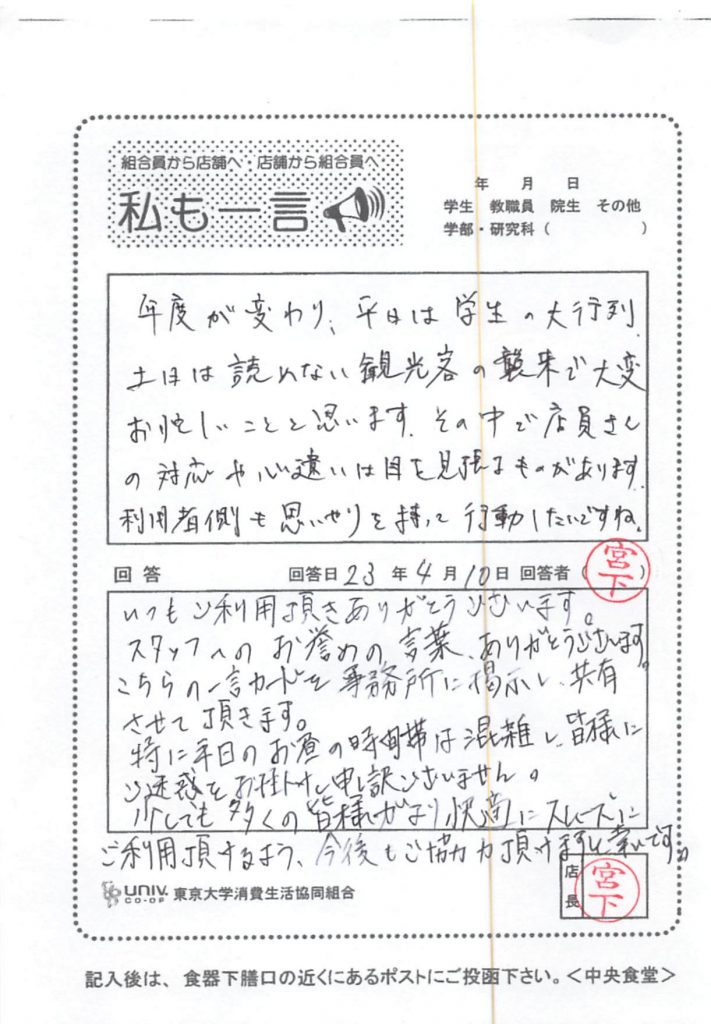 東大生協について