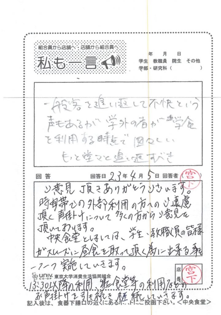 現在の生協食堂ライスサイズは以下の通りになっております。