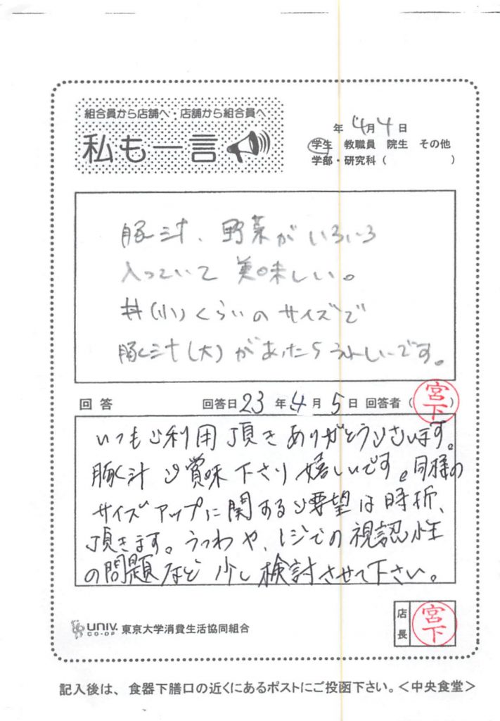 また、小サイズでも多い場合は、大変お手数ではございますが、提供スタッフに「少な目で」と仰って頂ければ対応致します。特小サイズにつきまして、同様のご意見を多く頂いた際に検討致します。何卒ご了承くださいませ。