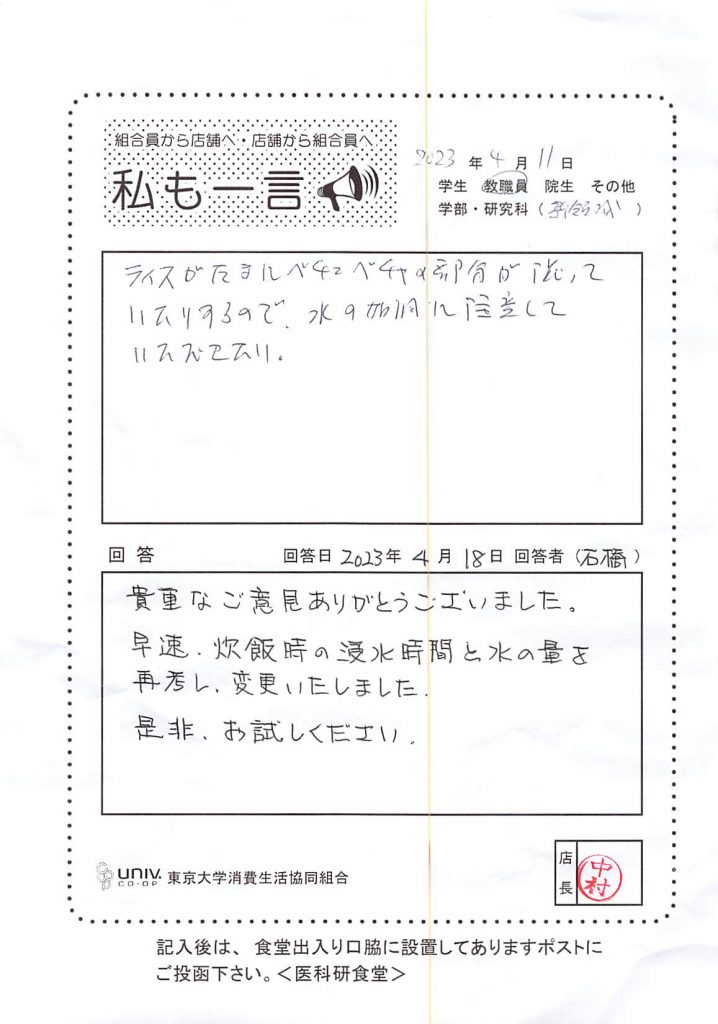 ライスがたまにベチャベチャの部分が混じって・・・