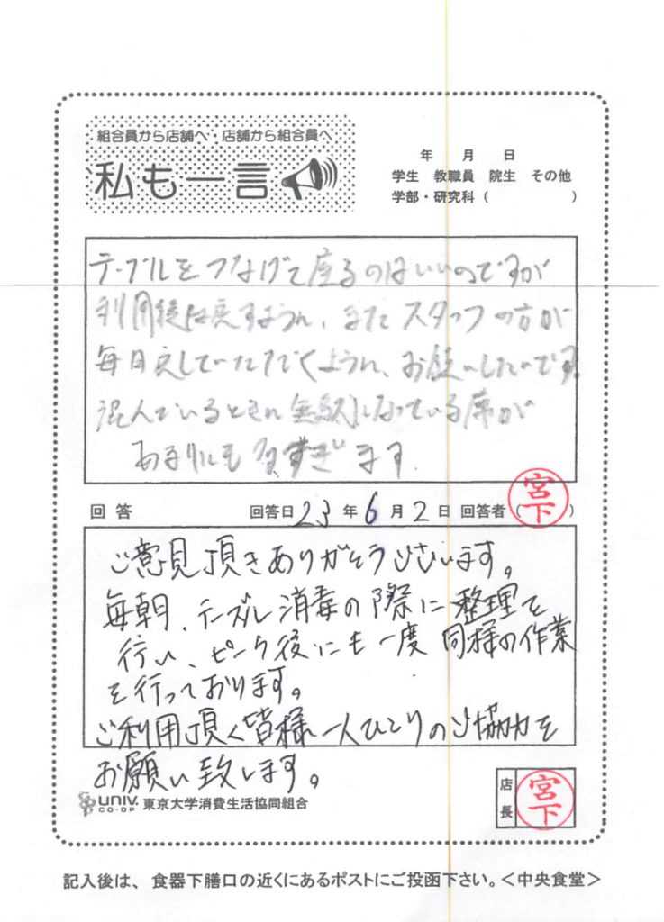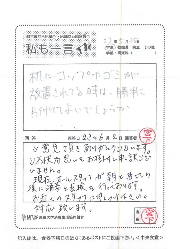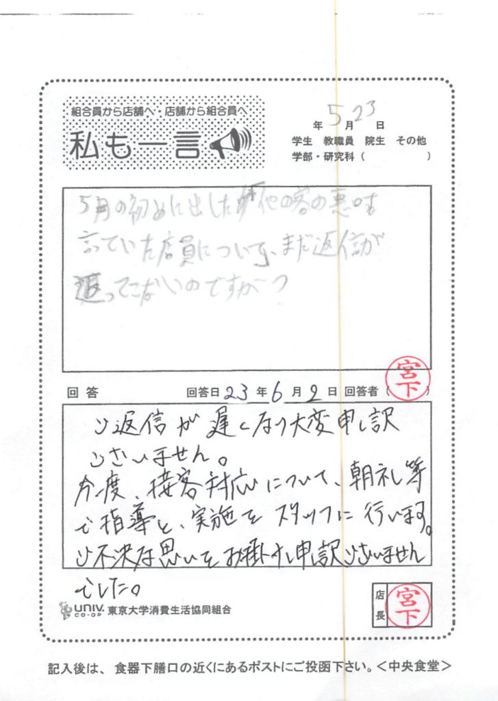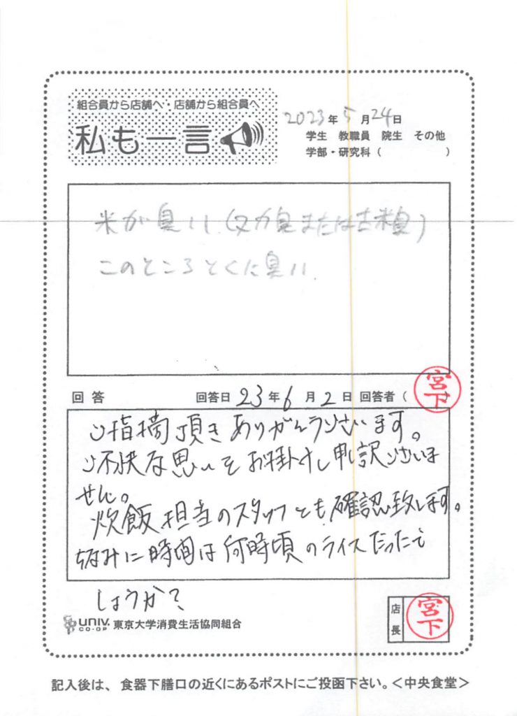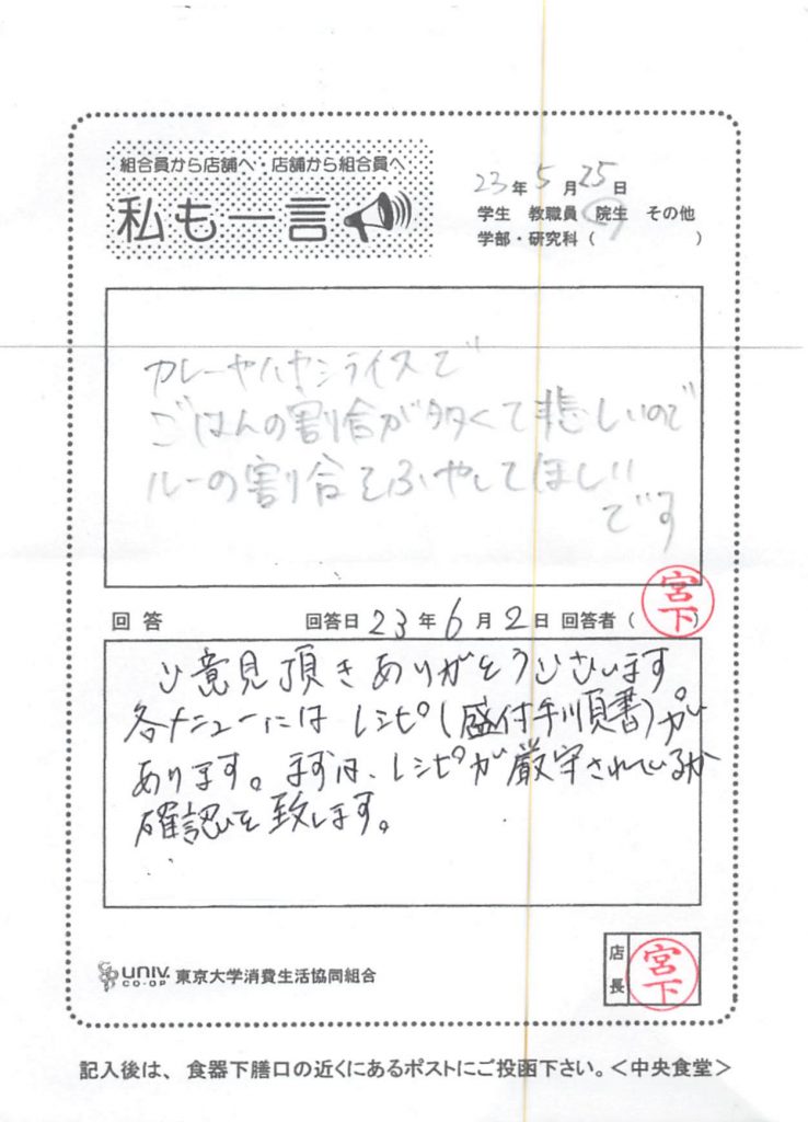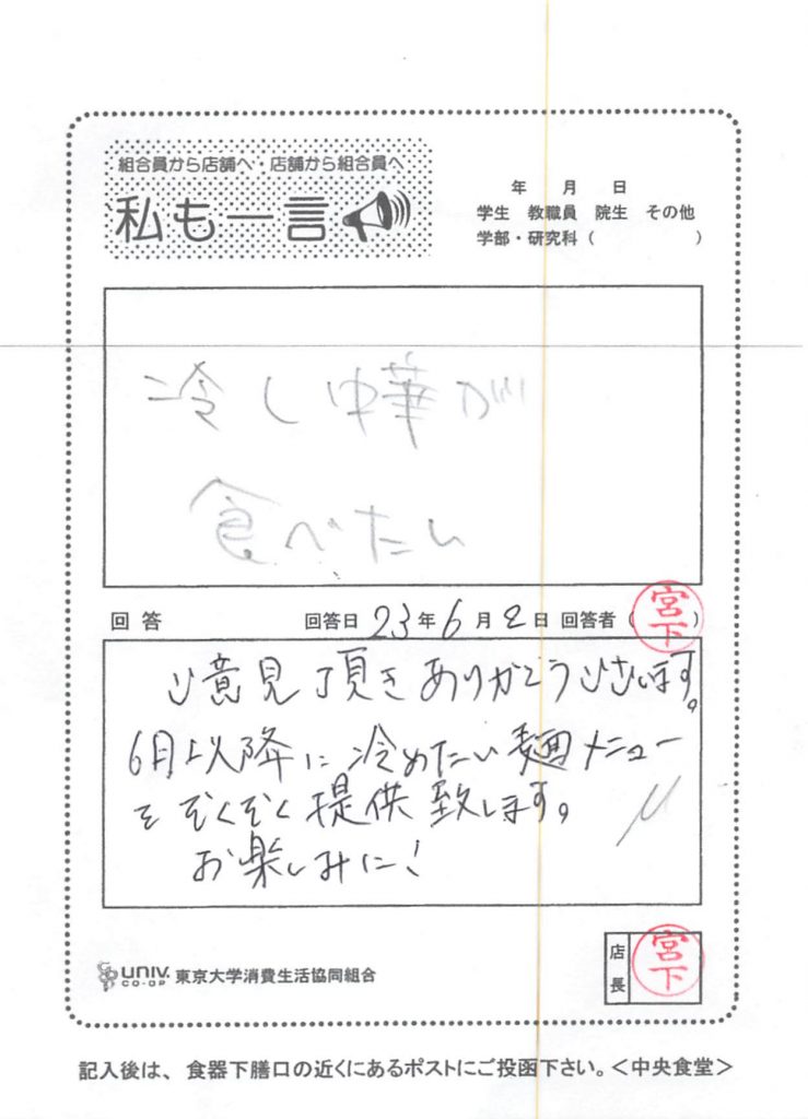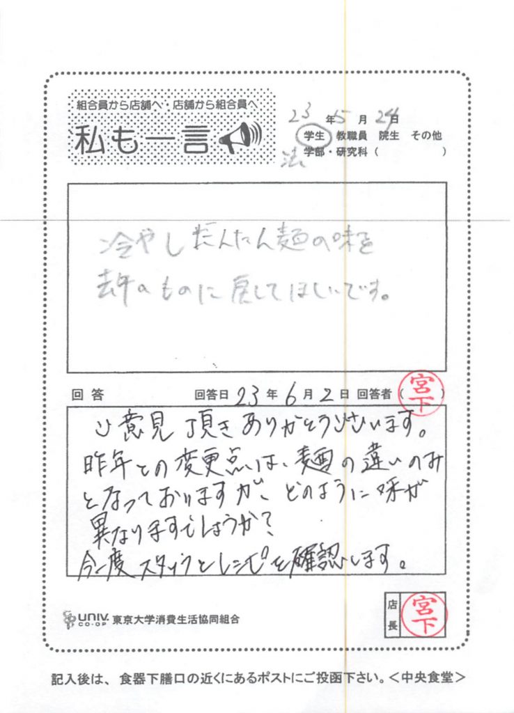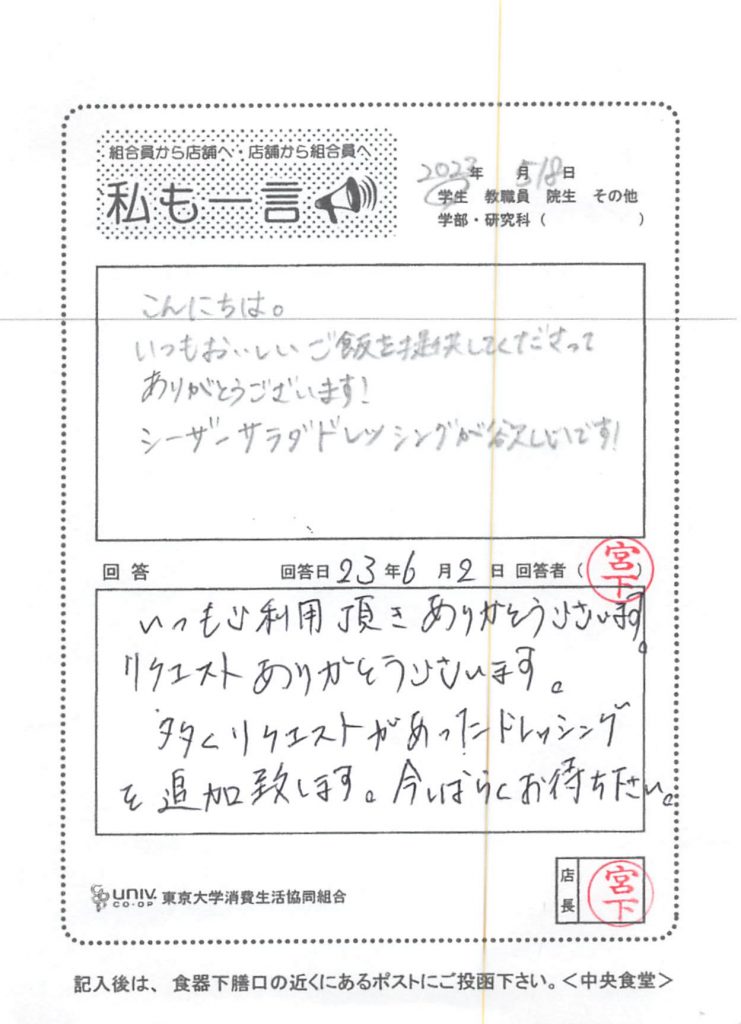 すぐに定番メニューにラインナップする事は難しいですが、定番を望む声が多い事はメニューに関する全体の会の中で共有させて頂きます。