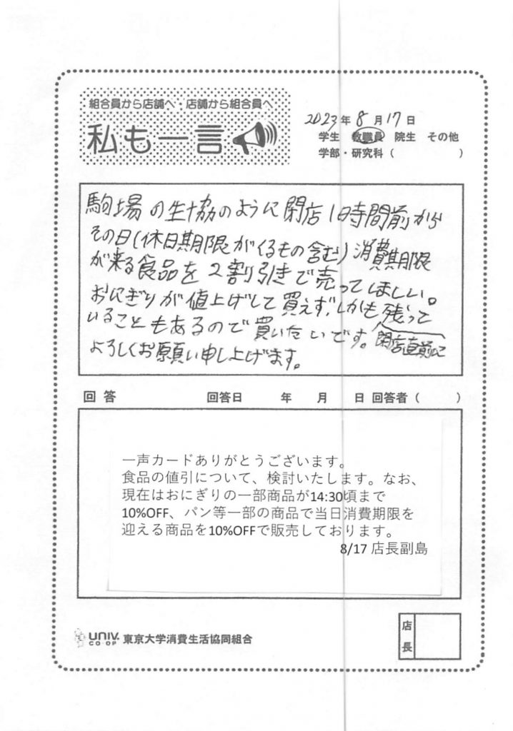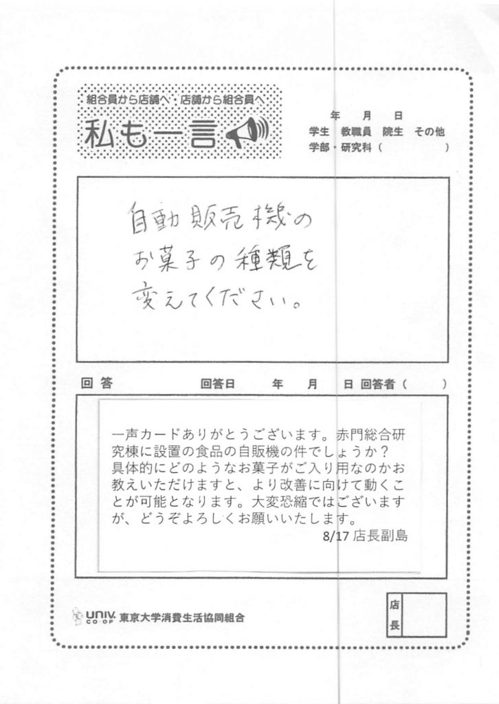 赤門総合研究棟の生協でもコーヒーを販売して・・・