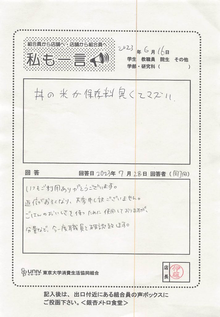 丼の米が保存料臭くて・・・