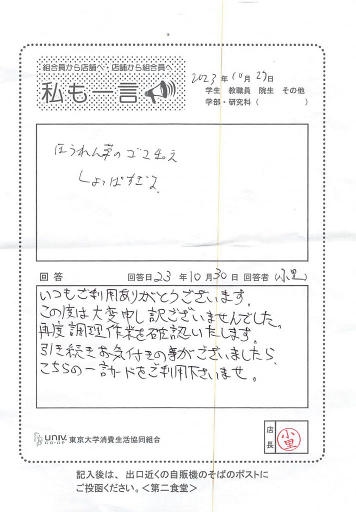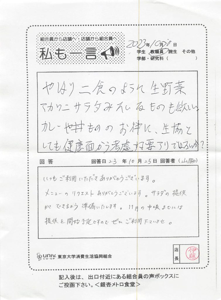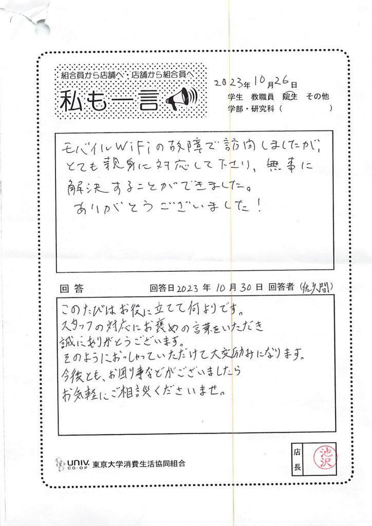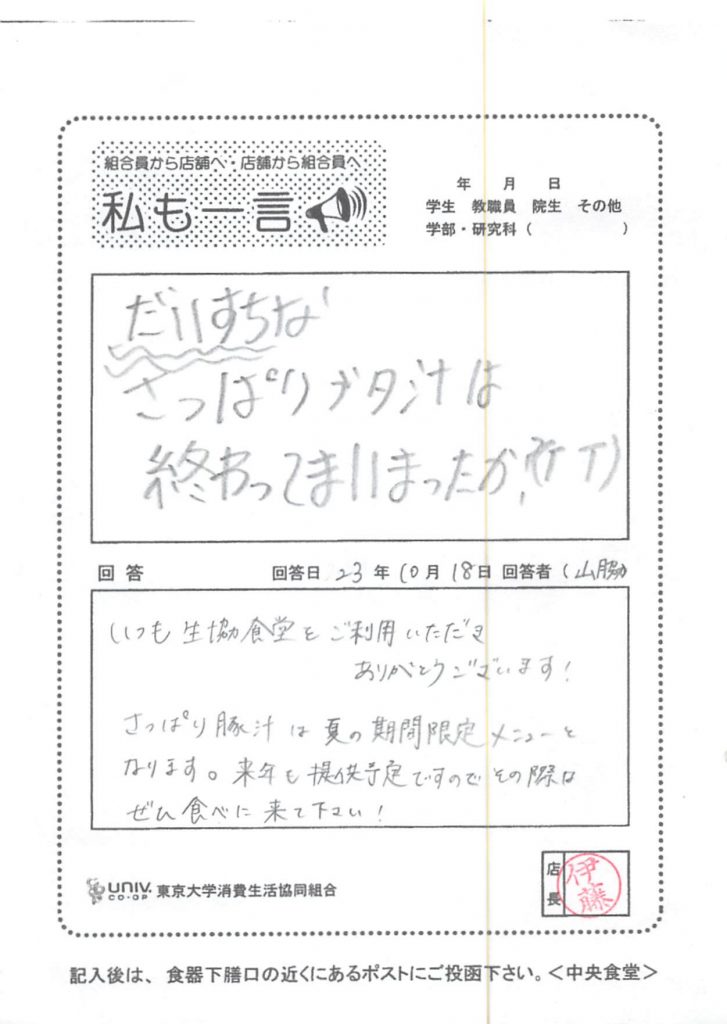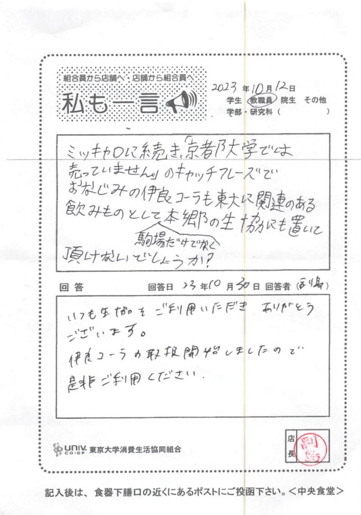 東大生協について