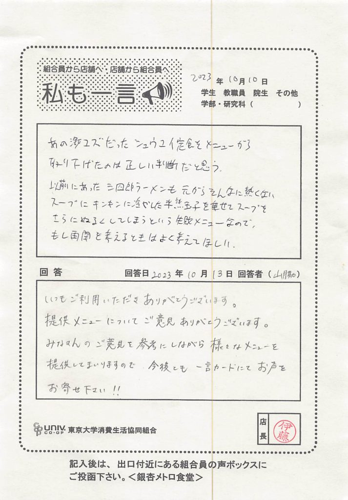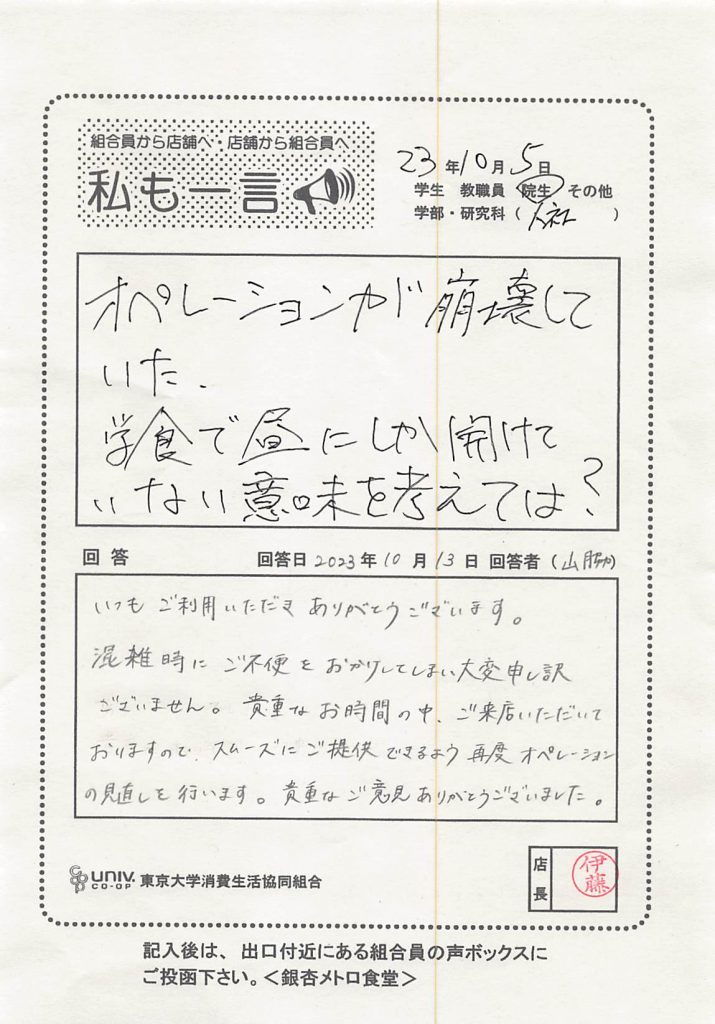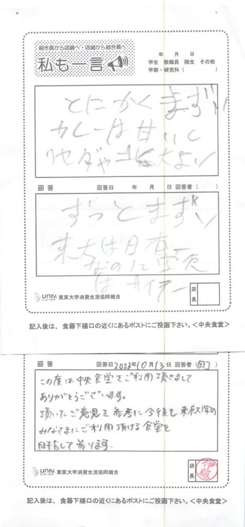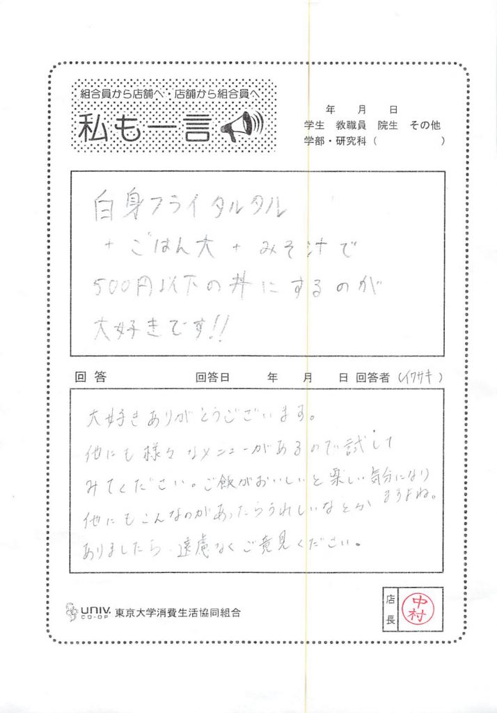 この度は貴重なご意見を頂き誠にありがとうございます。