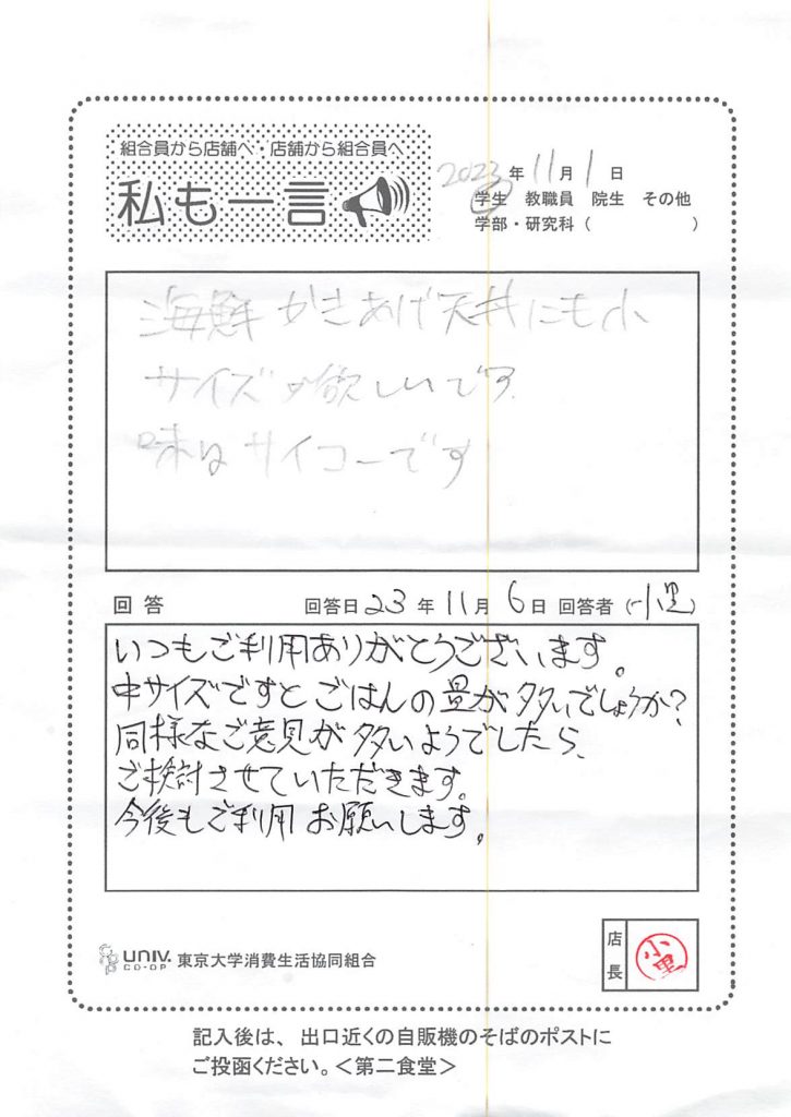 海鮮かきあげ丼天丼にも小サイズが・・・