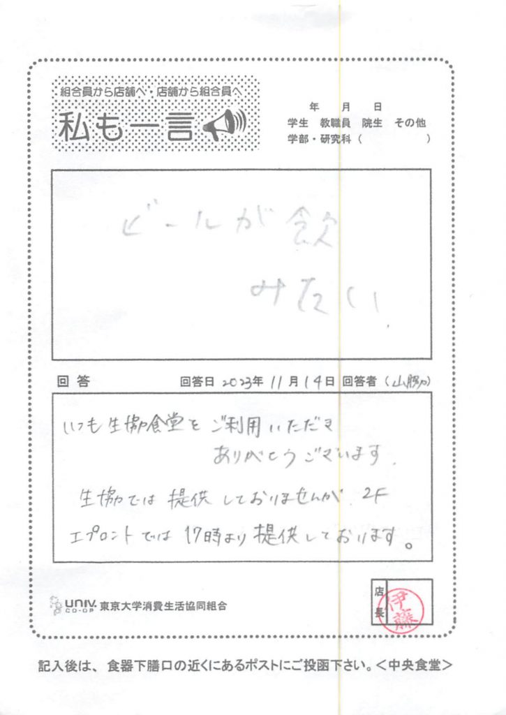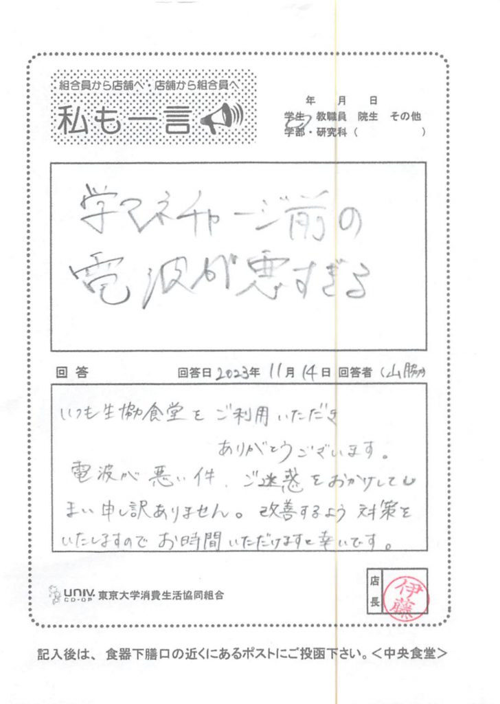 外部の方の利用に関して、ご不便おかけし申し訳ございません。こちらの件に関して、大学のほうにも状況を共有し、対応について協議を行っているところでございます。