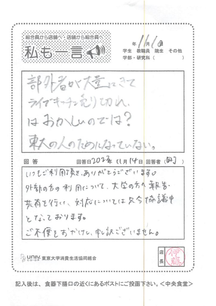 部外者が大量にきてライブキッチンで売り切れは・・・