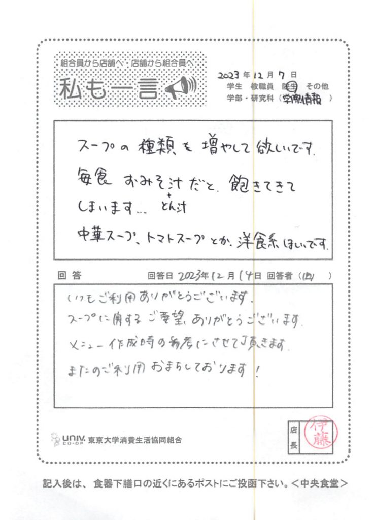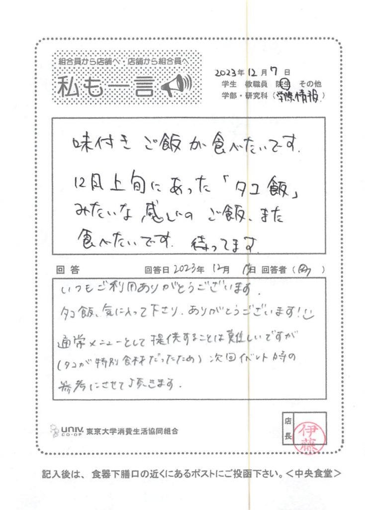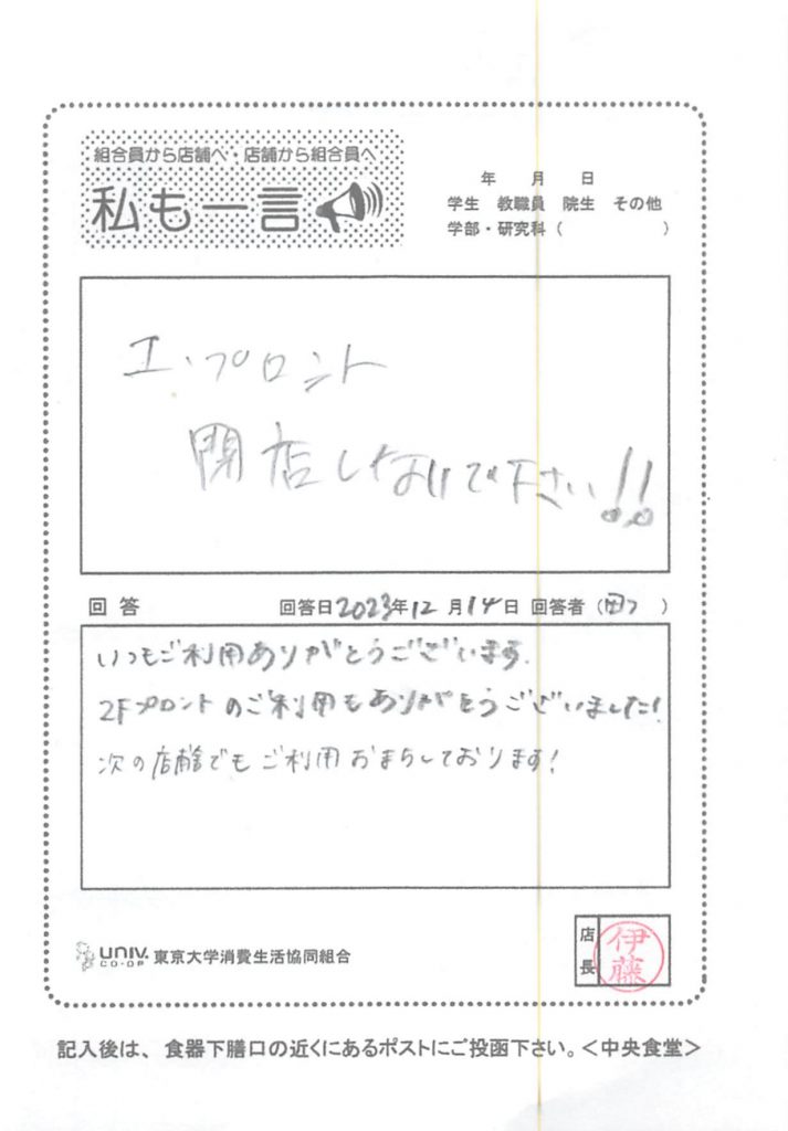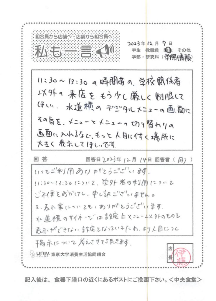 11:30~13:30の時間帯の学校関係者以外の来店を・・・