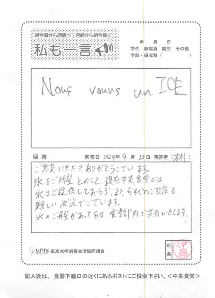Nous veuns un ICE・・・