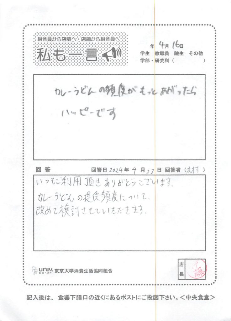 カレーうどんの頻度がもっと・・・