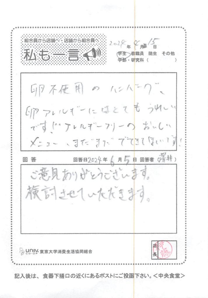 アレルギーフリーのおいしいメニューまだまだでてきて・・・