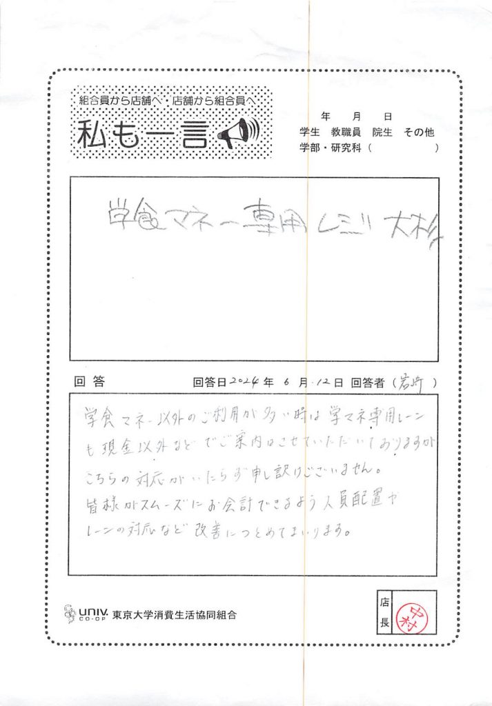 学食マネー専用レジ・・・