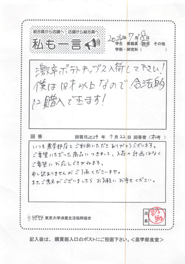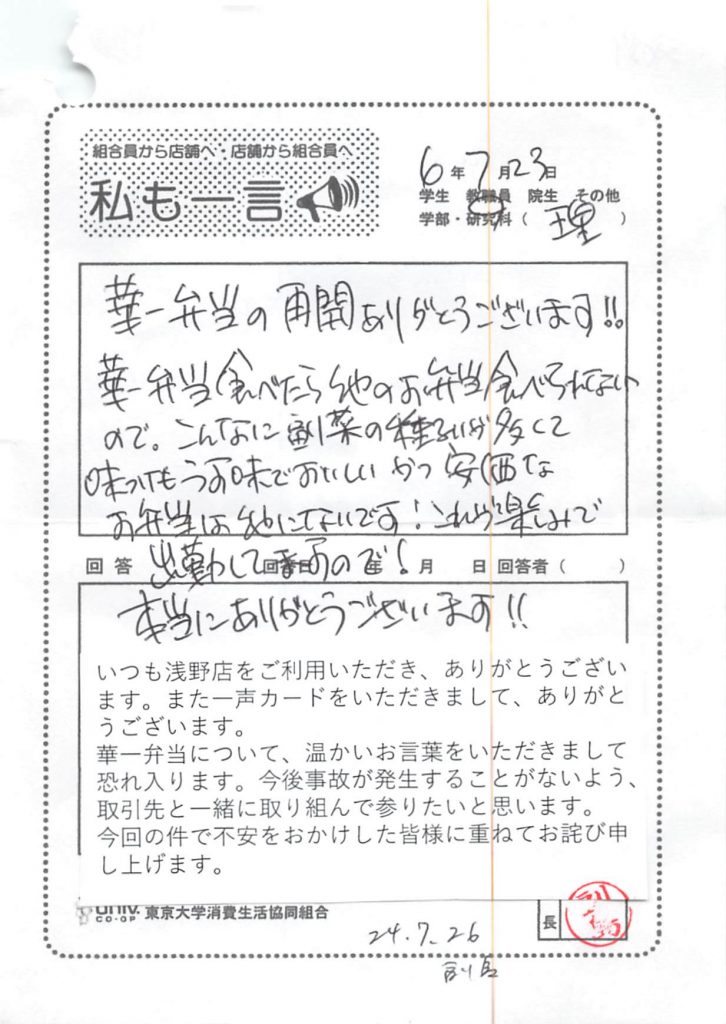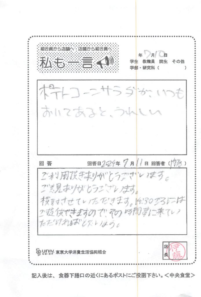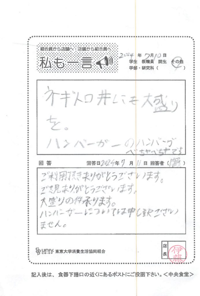 いつも中央食堂をご利用いただきありがとうございます。場所取りの件、ご迷惑をおかけしてしまい大変申し訳ございません。私どもも把握しており、席取り禁止の呼びかけを行っておりましたが、間に合わず防止しきれておりませんでした。現在、対策をさらに強化し、席取り禁止の掲示物やさらなる呼びかけ強化で対応しております。