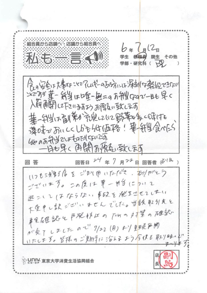 ホットコーヒーの販売の際、カップホルダーも・・・
