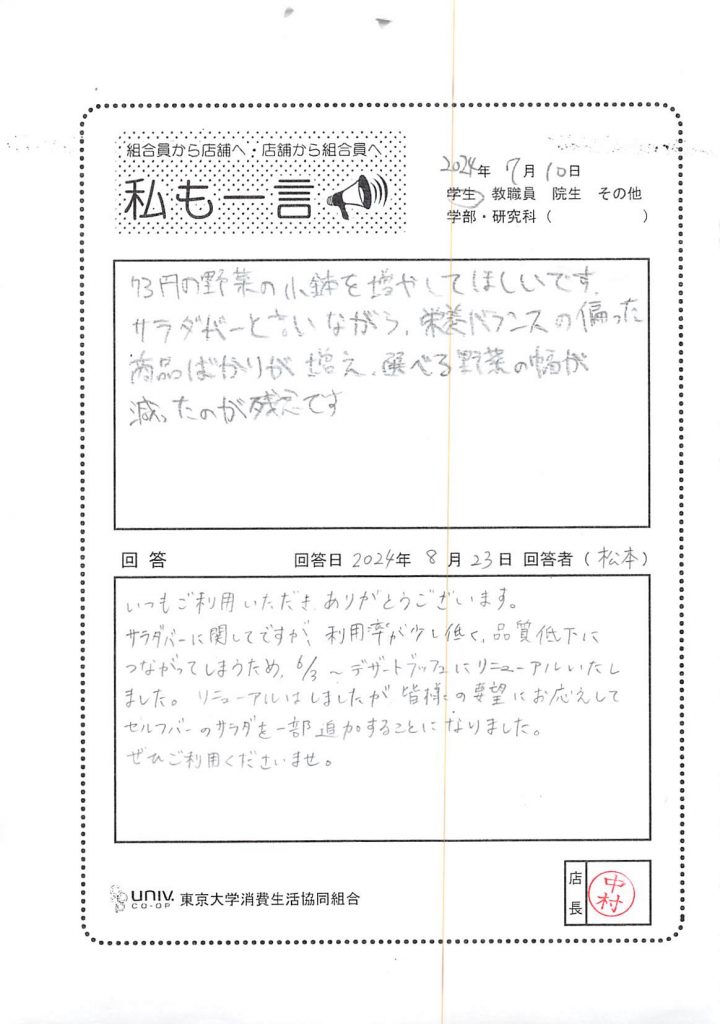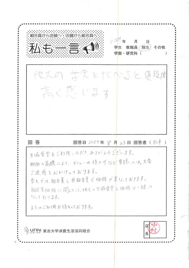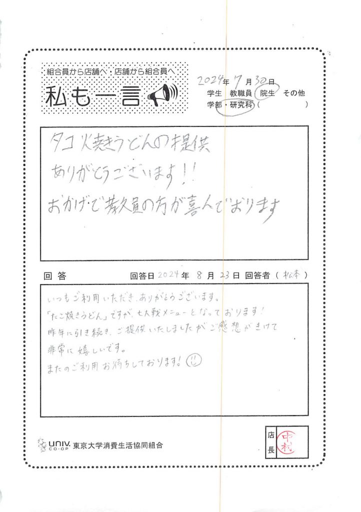 東大生協について