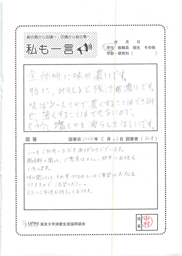 全体的に味が濃いです・・・