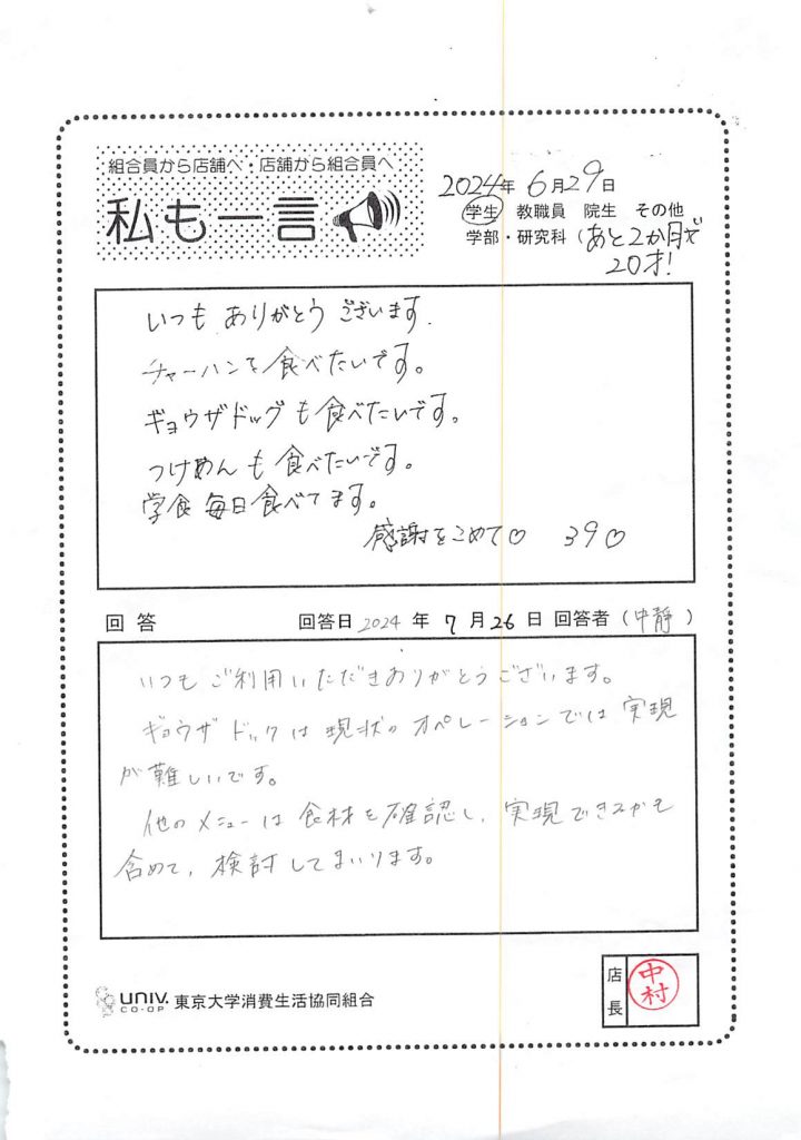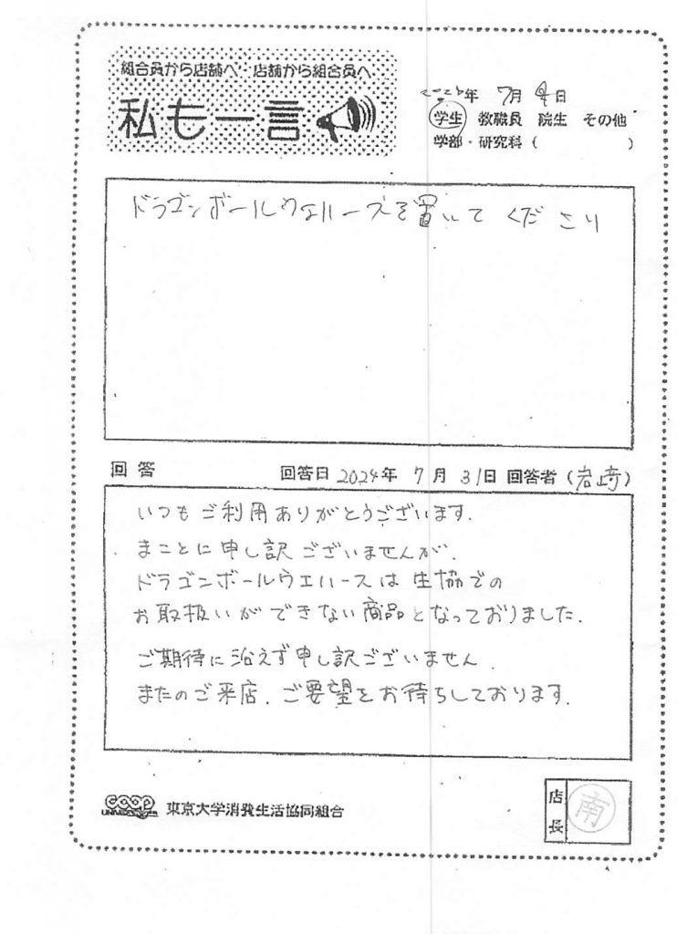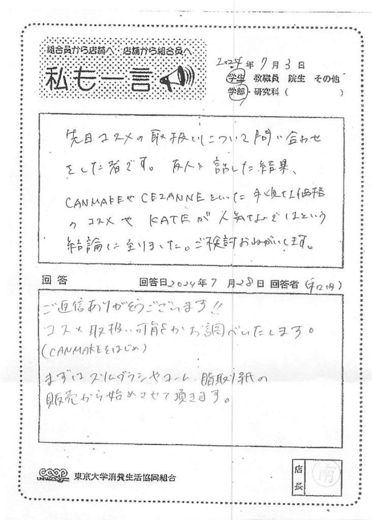 東大生協について