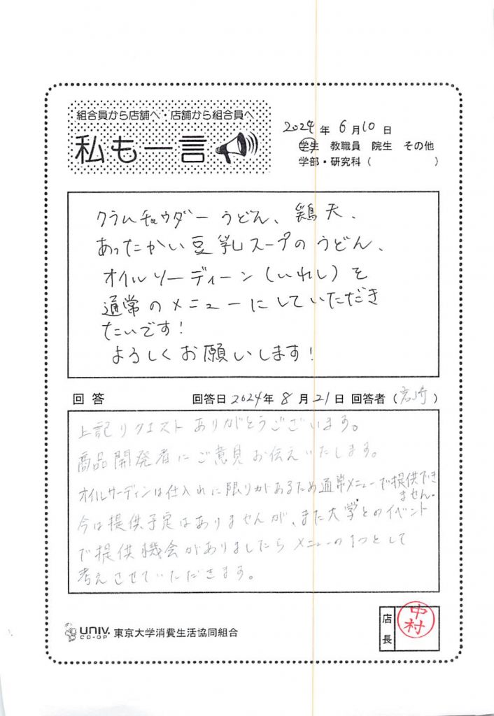 クラムチャウダーうどん、鶏天、あったかい豆乳・・・