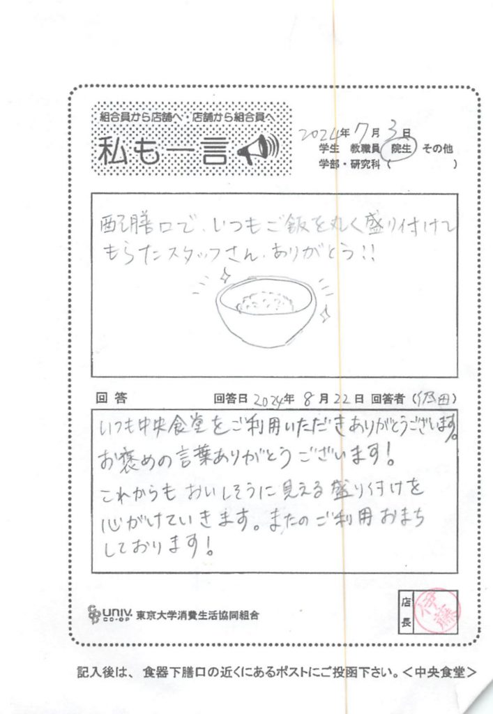 配膳口でいつもご飯を丸く盛り付けて・・・