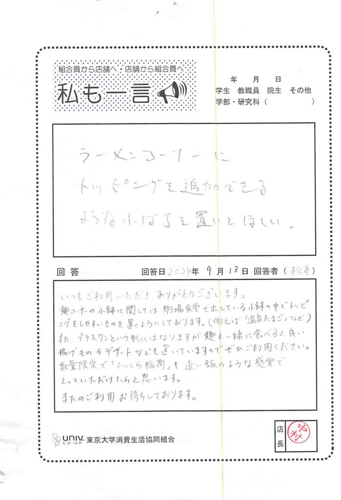 東大生協について