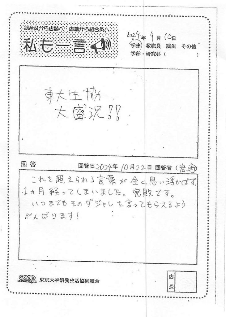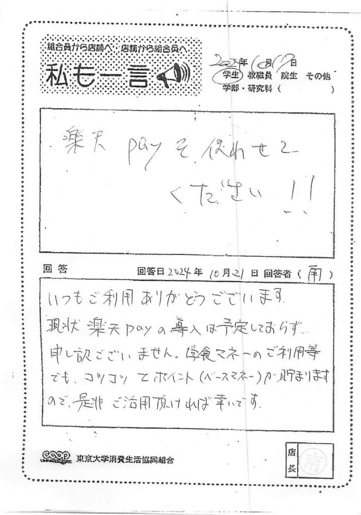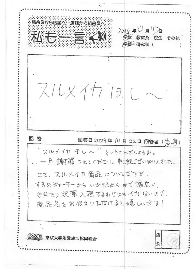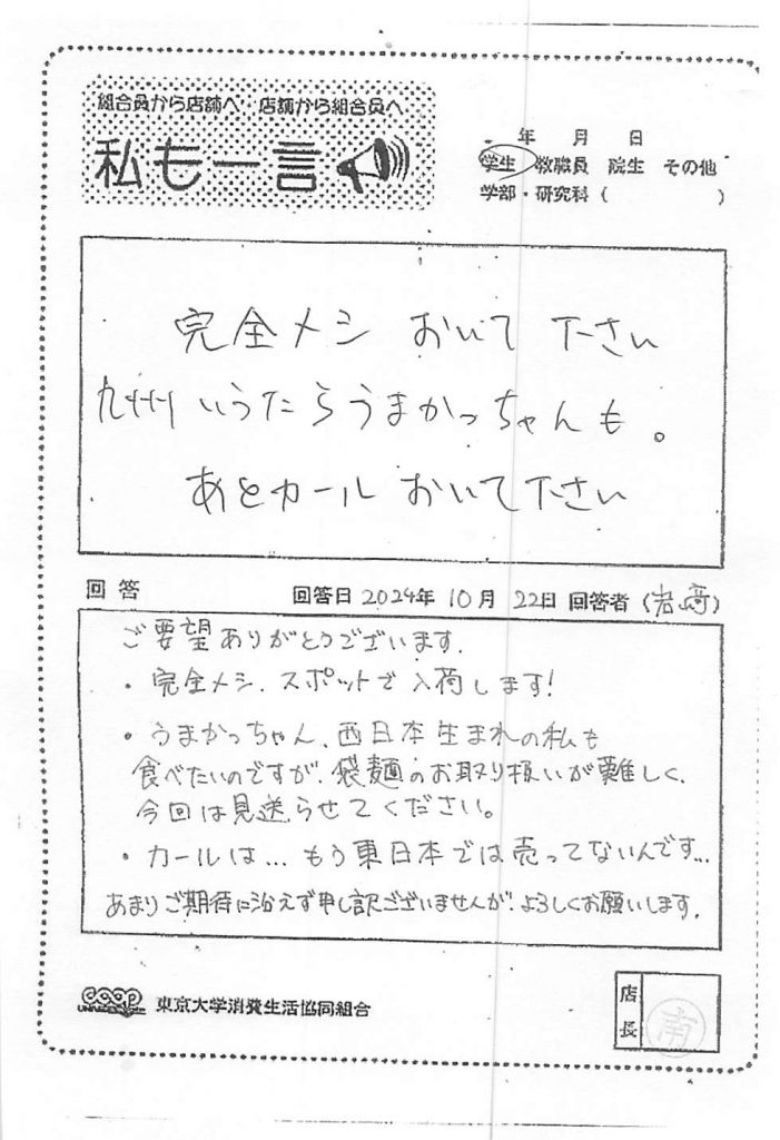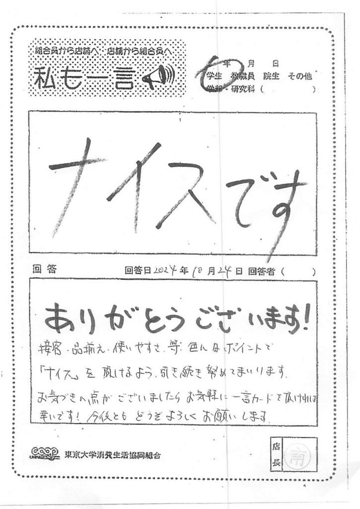 この度は貴重なご意見を誠にありがとうございます。