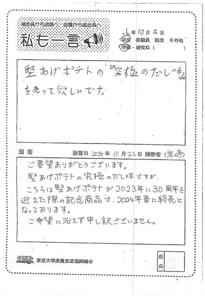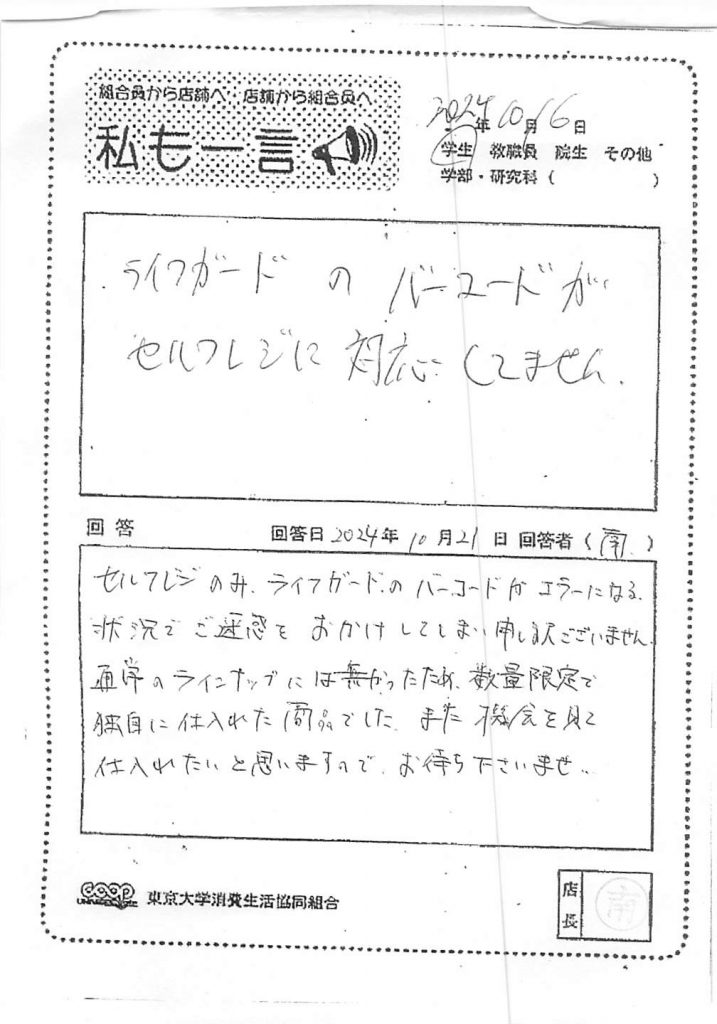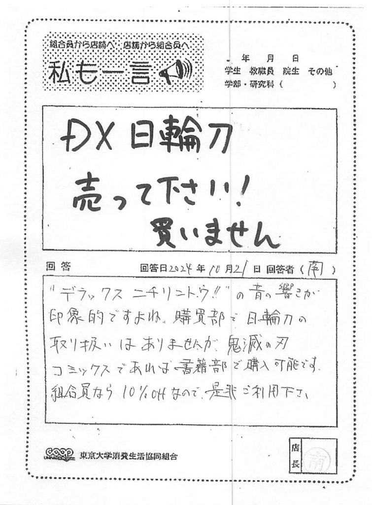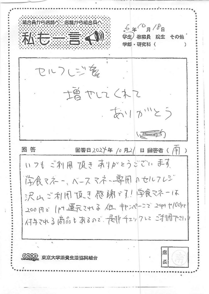 この度は貴重なご意見を誠にありがとうございます。
