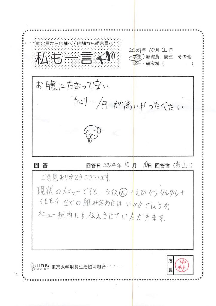 お腹にたまって安い カロリー/円が高いやつがたべたい・・・