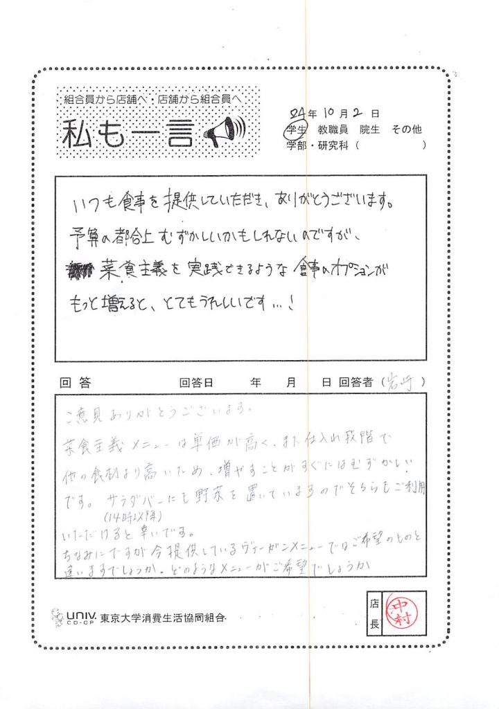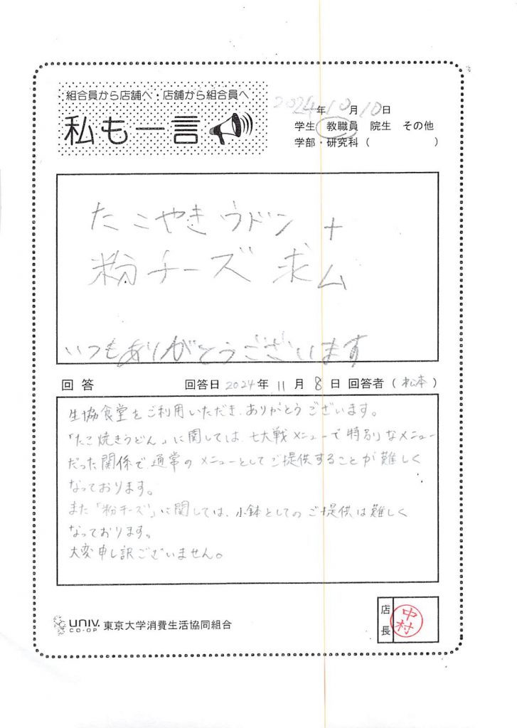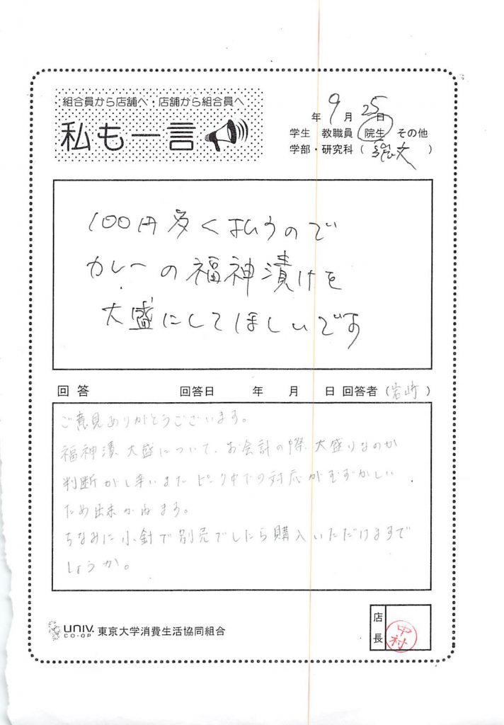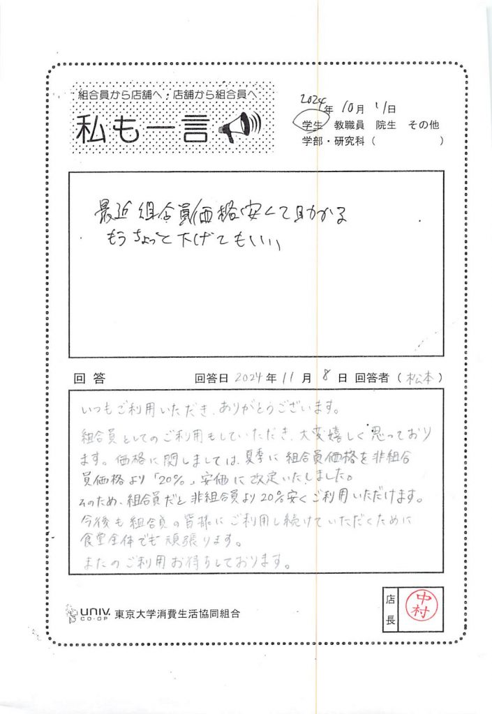 東大生協について