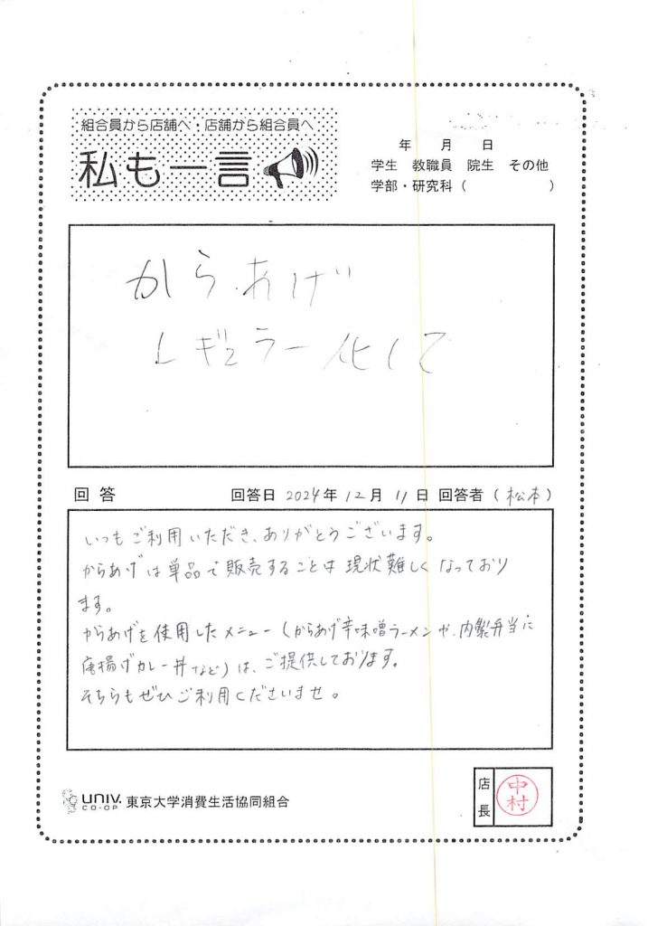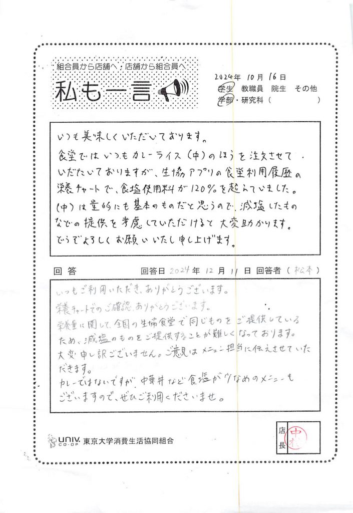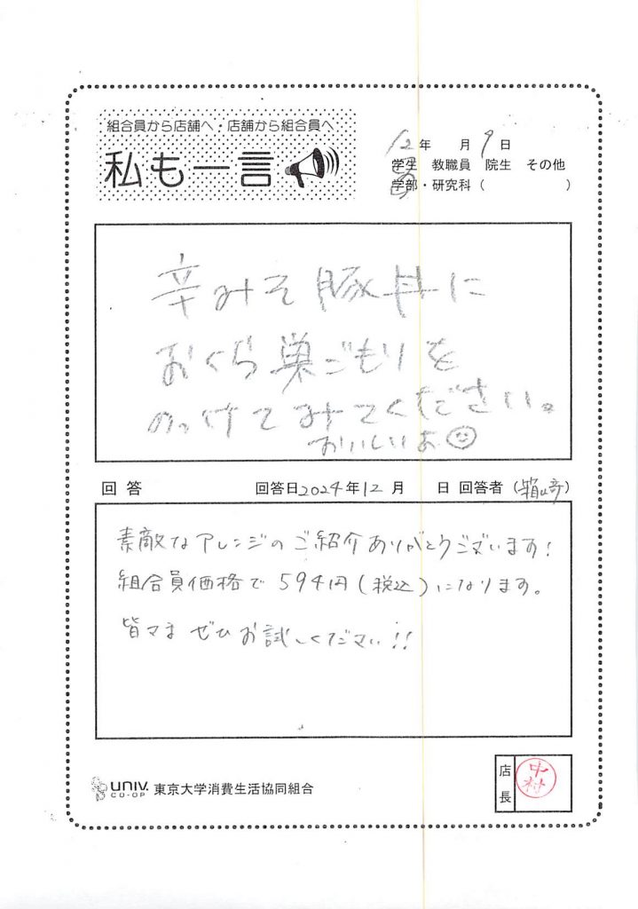 東大生協について