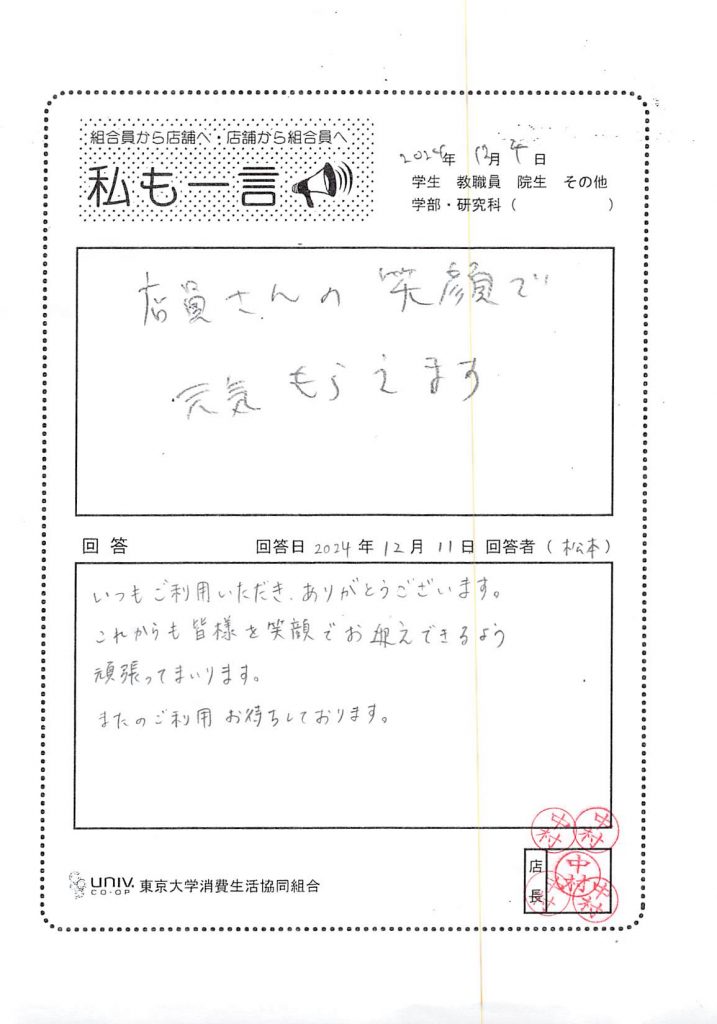 店員さんの笑顔で元気もらえます・・・