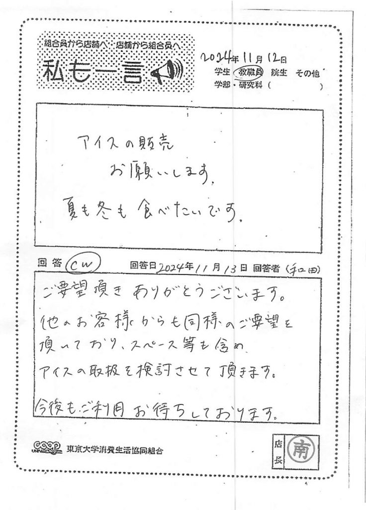 東大生協について