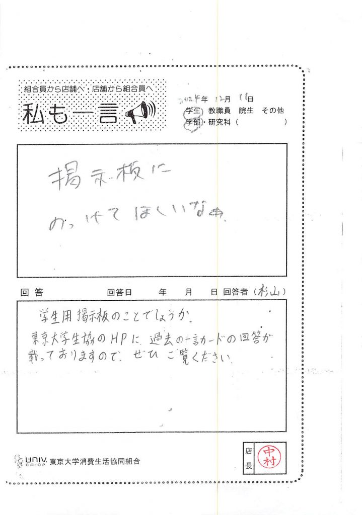東大生協について